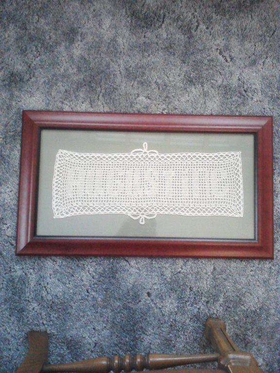This lovely personalized item makes a lovely gift. Any word or name up to 7 letters on this version. Doilly will come blocked and ready to be framed. if you would like your doillie made into a throw pillow case there is an additional charge.